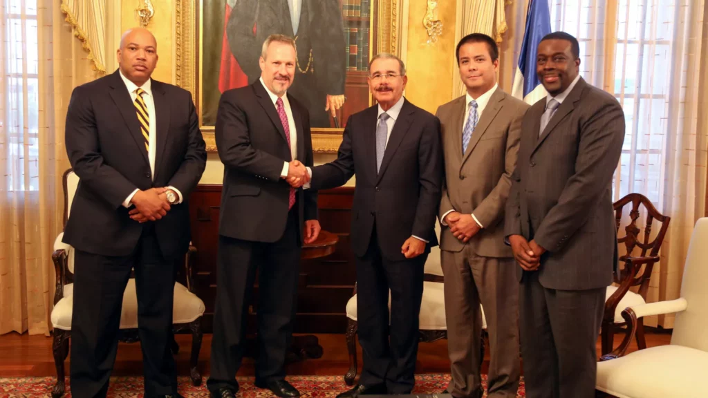 SANTO DOMINGO.-El presidente Danilo Medina recibió en su despacho del Palacio Nacional al nuevo director regional de la Administración para el Control de Drogas (DEA, por sus siglas en inglés) para la región del Caribe Matthew G. Donahue.