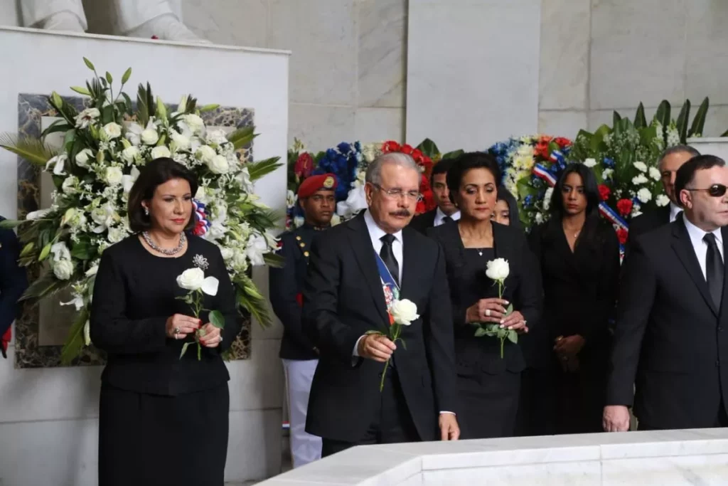 SANTO DOMINGO.- El presidente Danilo Medina depositó esta tarde una ofrenda flotar en el Altar de la Patria en compañía de la vicepresidenta Margarita Cedeño y la primera dama Cándida Montilla, como parte de los actos por el 175 aniversario de la Independencia Nacional.