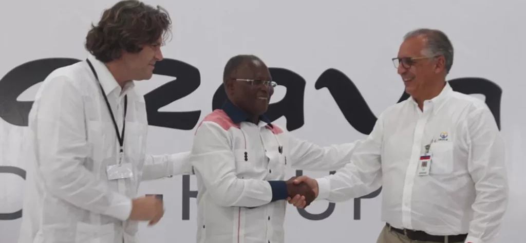 Además estuvo el presidente de Compagnie de Development Industriel (Codevi) y el Grupo M., Fernando Capellán; el representante del Consejo Binacional Quisqueya, Juan Vicini, y representantes de las dos comunidades fronterizas.