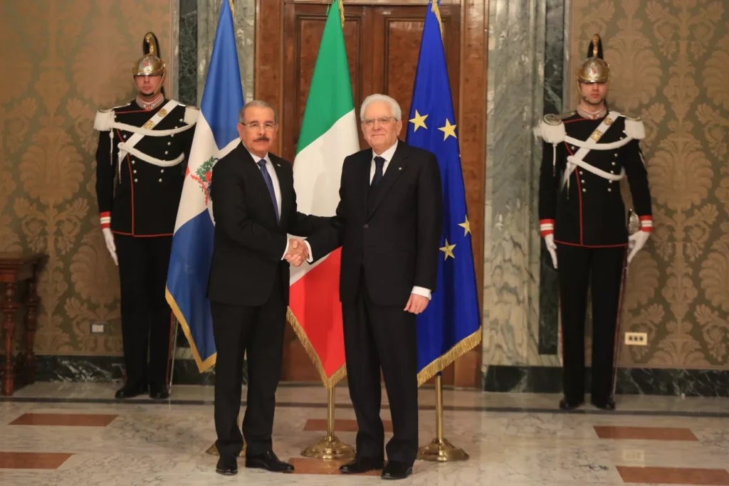 ROMA, Italia.– El presidente Danilo Medina fue recibido por su homólogo de la República Italiana, Sergio Mattarella, en el Palacio de Quirinal, donde también fue ofrecido un almuerzo en honor al jefe de Estado dominicano.