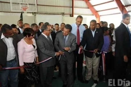 El mandatario cortó la cinta simbólica para entregar el remozado complejo deportivo, acompañado de los ministros de Deportes, Felipe Jay- Payano, y de Obras Públicas, Víctor Díaz Rúa.