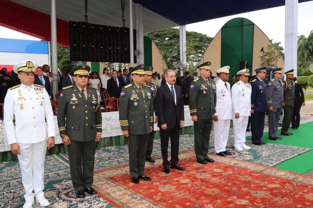 El presidente Danilo Medina, jefe Supremo de las Fuerzas Armadas y de la Policía Nacional le entregó el sable de mando a los 27 oficiales que salen con el rango de segundo teniente.