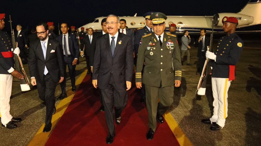 El Mandatario arribó a suelo dominicano por la Base Aérea de San Isidro, pasadas las 7:00 de la noche.