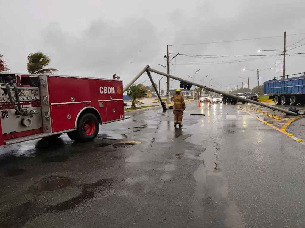 Asimismo, el semáforo ubicado en la intersección de la avenida 30 de Mayo con Juan Bautista Vicini resultó afectado por los vientos, lo que motivó la intervención de brigadas del Instituto Nacional de Tránsito y Transporte Terrestre (INTRANT), el Cuerpo de Bomberos del Distrito Nacional y la Dirección General de Seguridad de Tránsito y Transporte Terrestre (DIGESETT), quienes procedieron al retiro de la estructura dañada.