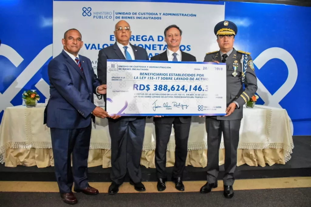 SANTO DOMINGO.– La Procuraduría General de la República distribuyó a instituciones del Estado y a organizaciones no gubernamentales (ONGs) que contribuyen con el combate del crimen RD$388 millones, que fueron decomisados en distintos casos de lavado de activos.