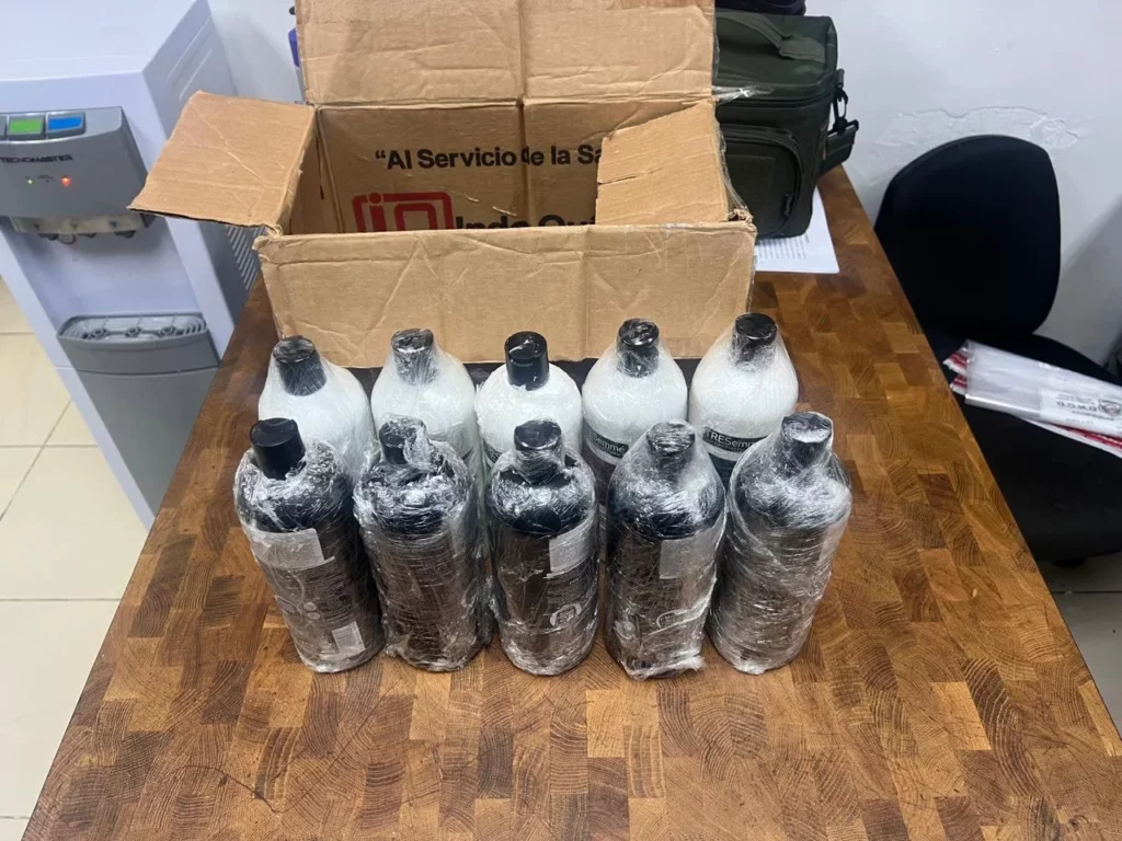 Por orden del fiscal actuante, se procedió a abrir el paquete, en cuyo interior se encontraron 10 envases de productos capilares llenos de cocaína líquida, con un peso aproximado de un kilogramo, según el análisis del Instituto Nacional de Ciencias Forenses (INACIF).