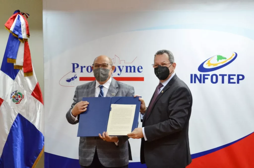 Santo Domingo.-El Consejo Nacional de Promoción y Apoyo a la Micro, Pequeña y Mediana Empresa (PROMIPYME) y el Instituto Nacional de Formación Técnico Profesional (INFOTEP) suscribieron un acuerdo de colaboración mediante el cual brindarán asesoría, asistencia técnica y capacitación a empresas beneficiadas con financiamientos otorgados por PROMIPYME.