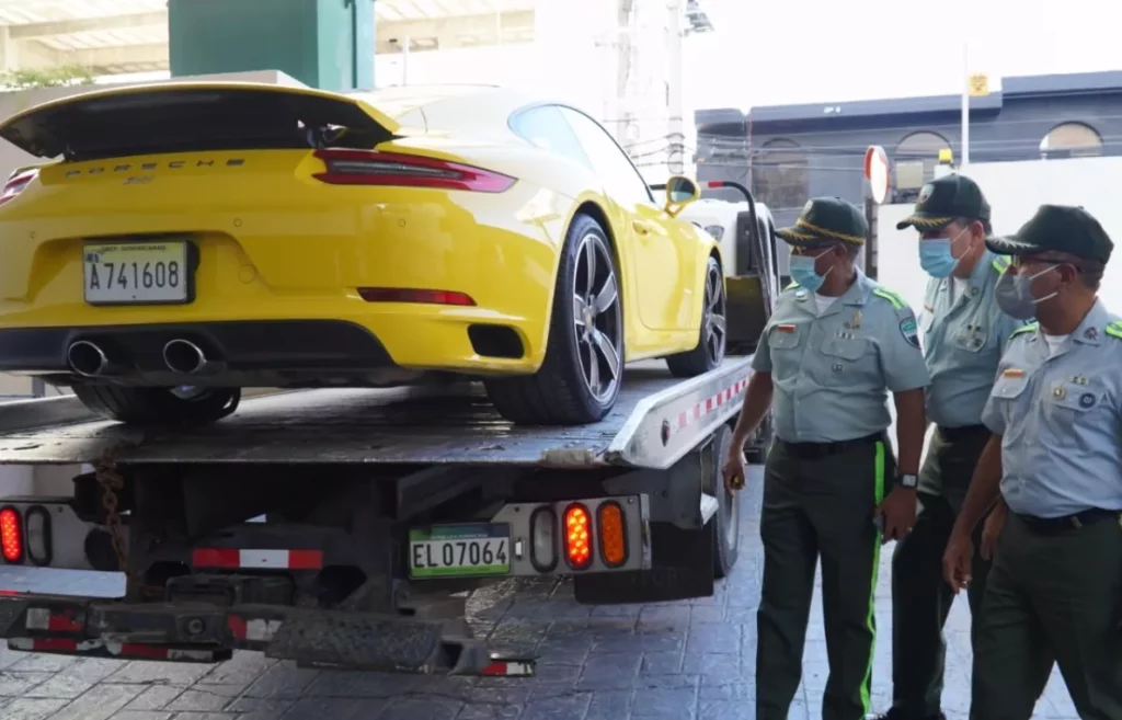El conductor del Porsche amarillo, acusado de violar la ley de transito por andar sin documentos del vehículo, ni la licencia y se transportaba a alta velocidad y de manera temeraria el pasado sábado en la avenida Lincoln.