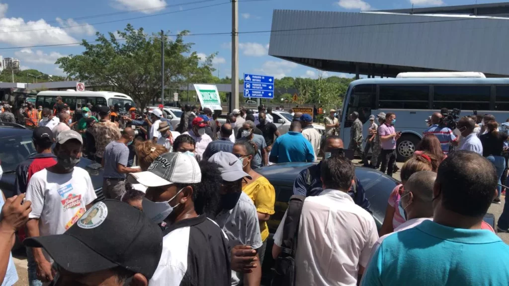 SANTO DOMINGO.-Decenas de munícipes de Santo Domingo Este protestan en estos momentos frente al Parque del Este donde el presidente de la República encabezará el acto de inauguración de una terminal de autobuses.