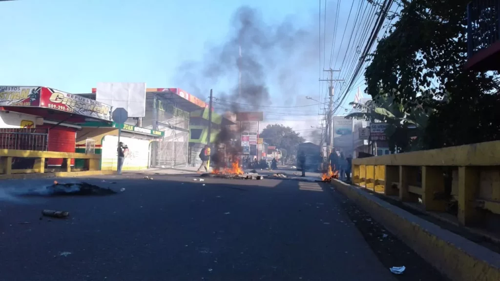 Los protestantes quemaron neumáticos y lanzaron basura a las calles, mientras agentes de la Policía Nacional tratan de calmar la situación y prevenir hechos lamentables. Muchos de los establecimientos comerciales han cerrado sus puertas.