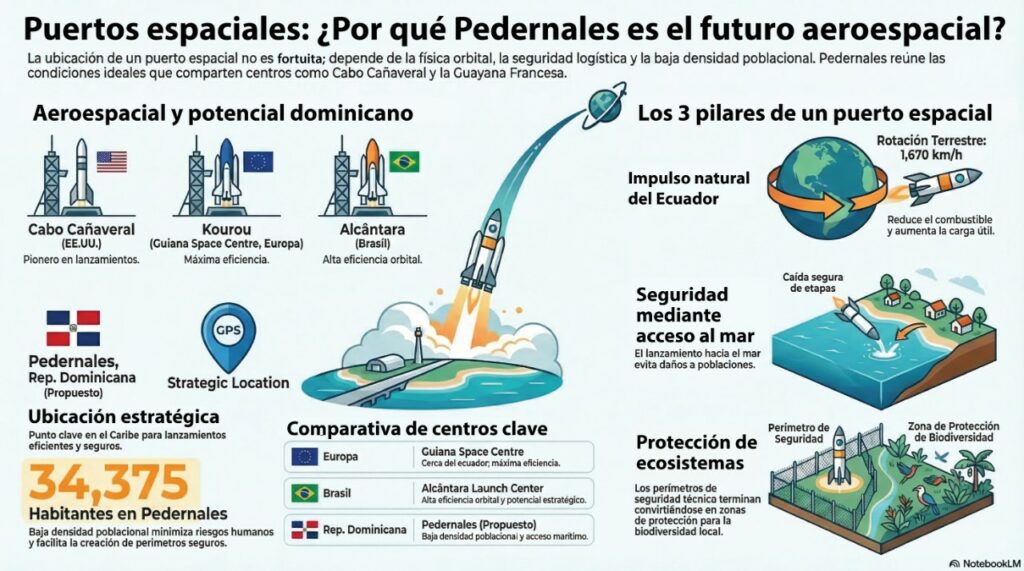 SANTO DOMINGO.- El proyecto de puerto espacial en Pedernales fue presentado como una iniciativa alineada con la sostenibilidad y la protección del medio ambiente; sin embargo, hasta el momento el Gobierno dominicano no ha ofrecido detalles técnicos específicos sobre su impacto ambiental, ejecución ni alcance estructural.