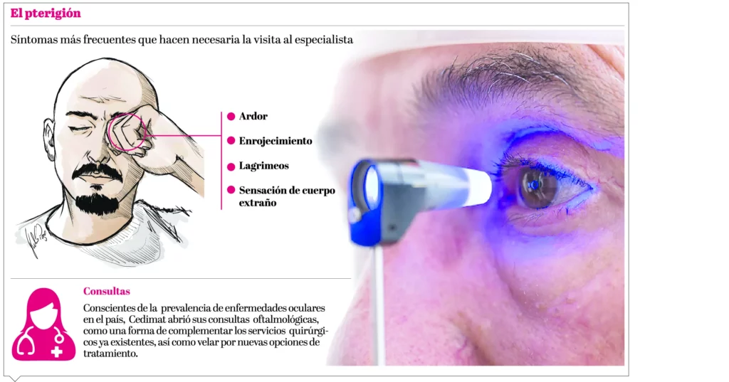 “Se trata de una enfermedad que tiene mayor prevalencia en las zonas ecuatoriales e involucra un cuadro de inflamación crónica, proliferación del tejido conectivo subconjuntival y la presencia de angiogénesis, la cual provoca un crecimiento de tejido elastótico y de conjuntiva anormal sobre la córnea”.