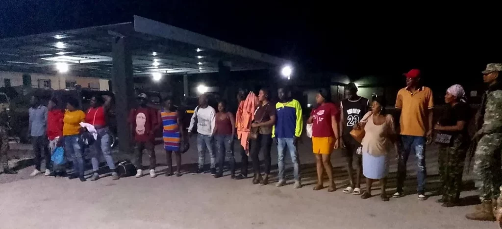 Elías Piña.- En un operativo realizado en el Distrito Municipal de Guayabo, 16 inmigrantes con estatus migratorio irregular fueron detenidos mientras se ocultaban en una casucha de zinc deshabitada.