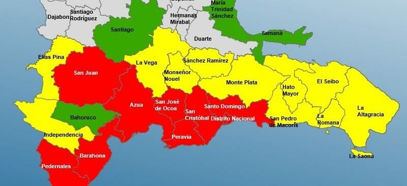 En verde: María Trinidad Sánchez, Bahoruco, Samaná y Santiago.