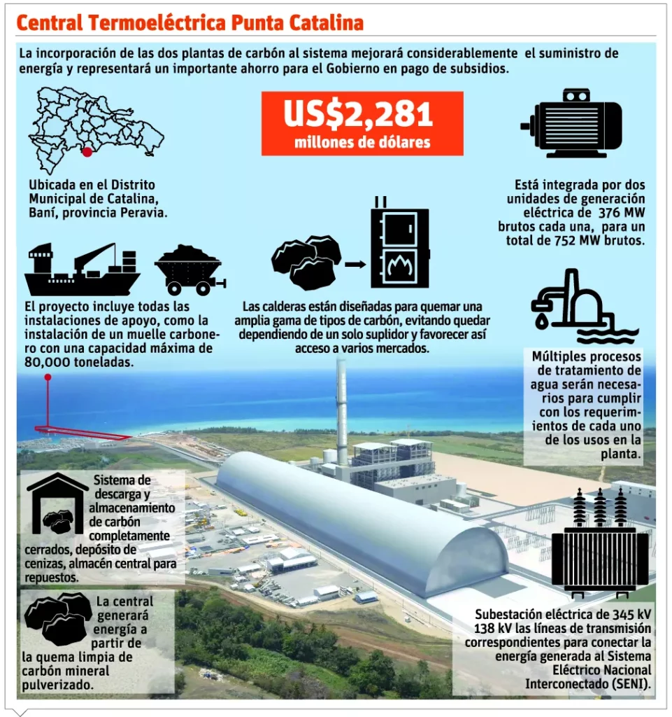 SANTO DOMINGO.-A partir de mañana entrarán al sistema energético 40 megavatios de la primera planta de la central termoeléctrica de Punta Catalina.