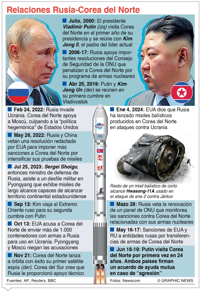 Seúl.-Corea del Norte y Rusia firmaron ayer un acuerdo estratégico que incluye la asistencia militar mutua en caso de ataque y articulará su relación, fortalecida al calor de la guerra de Ucrania y la apuesta nuclear de Pionyang y que busca impulsar un nuevo orden multipolar que desafíe la hegemonía estadounidense.