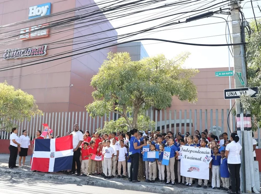Santo Domingo.- Con los "ojitos achinados" por el candente sol, pero con una gran sonrisa, niños de la Escuela Francisco del Rosario Sánchez recorrieron las calles del ensanche Kenedy entonando las notas del Himno Nacional completo.