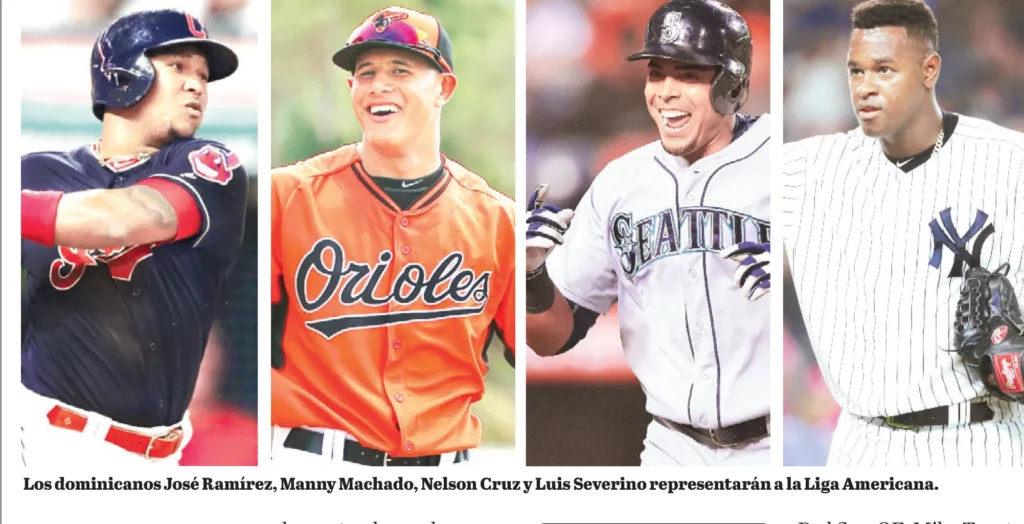 NEW YORK.-Los jugadores José Ramírez, de Cleveland; Manny Machado, de Baltimore; Nelson Cruz, de Seattle, y Luis Severino, de los Yanquis, serán los representantes de República Dominicana en la versión 89 del Juego de Estrellas de Grandes Ligas a ser celebrado el próximo día en Washington, D.C. a las 7:30 p. m.