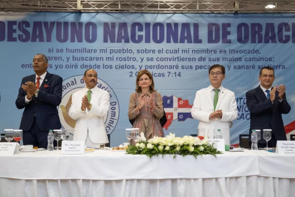 Tras participar en el Desayuno Nacional de Oración, Raquel Peña exhortó a las personas que, por alguna condición de salud necesitan usar mascarillas en lugares con aglomeración a que lo hagan.