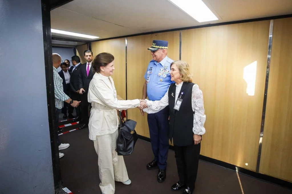 Peña arribó a Santo Domingo pasadas las 6:00 de la tarde, por el Aeropuerto Internacional de Las Américas Dr. José Francisco Peña Gómez y fue recibida por el general de brigada piloto Enmanuel Souffront Tamayo, FARD, director del Cuerpo Especializado en Seguridad Aeroportuaria y de la Aviación Civil (CESAC).