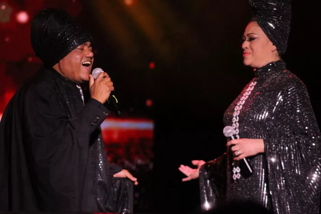 Con sombreros y gafas oscuras, al compás del merengue El Motor, recibieron al merenguero Aramis Camilo, quien interpretó este éxito musical ante la algarabía, los aplausos y gritos del público.