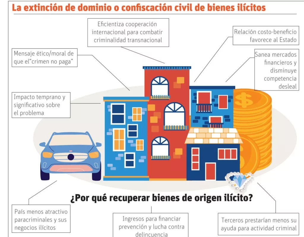 Manuel Bonelly. El destacado jurista, en su libro: “La Extinción de Dominio o Confiscación Civil de Bienes Ilícitos”, señala que recuperar bienes de origen ilícito constituye un mecanismo de generación de ingresos para financiar la prevención y lucha contra la delincuencia.