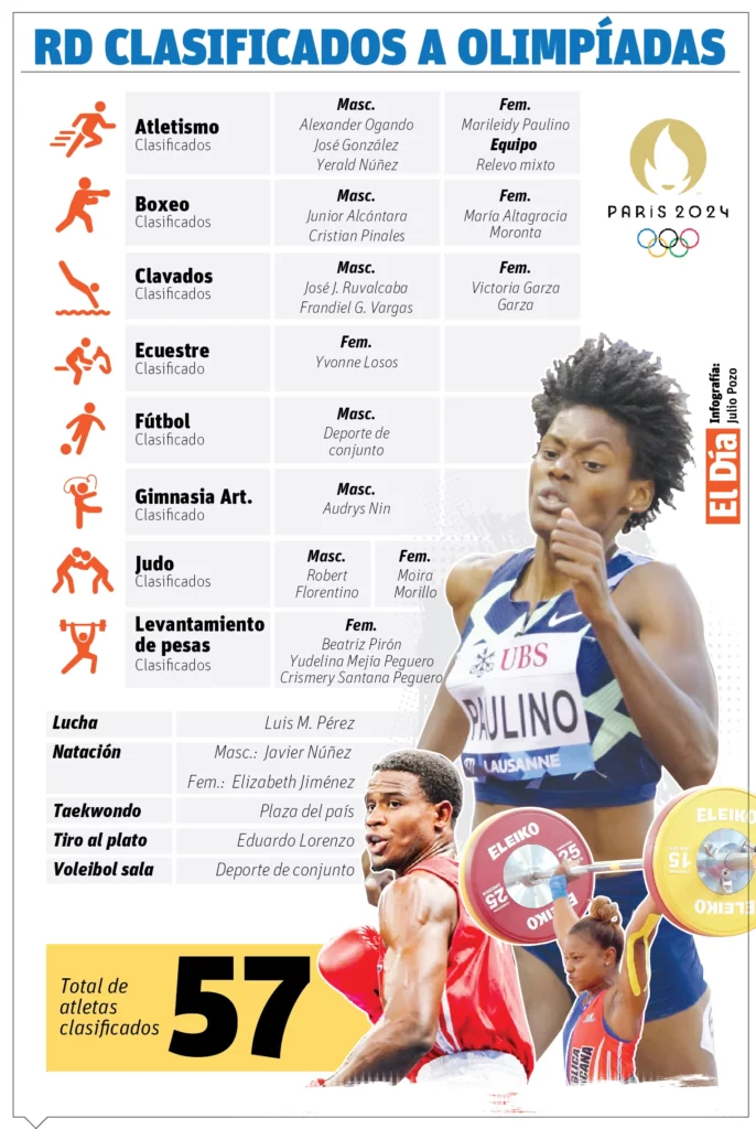 Santo Domingo.-República Dominicana llevará 57 atletas para los XXXIII Juegos Olímpicos de París, que inician el próximo día 26 del presente mes.