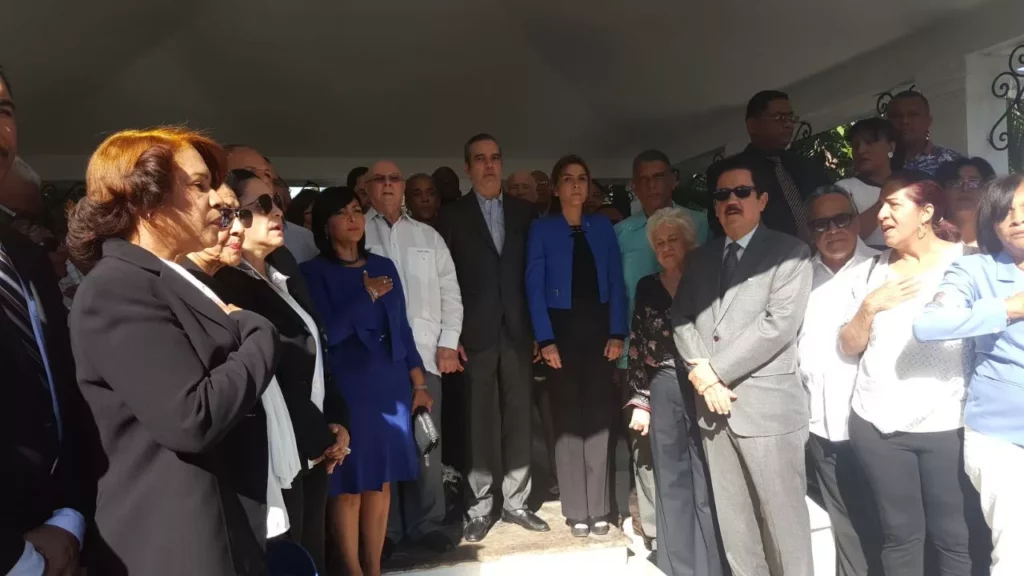 Hipólito y Luís Abinader y los candidatos Ignacio Paliza, Jesús Vásquez y Carolina Mejía depositaron ofrendas florales en memoria del extinto político.