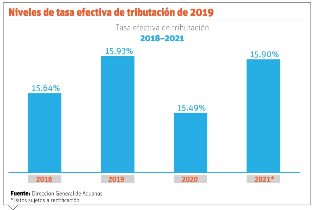 Indicó que en lo que va de año se están alcanzando los niveles de tasa efectiva de tributación de 2019 (15.93%), ya que ahora se encuentra en 15.90 %.