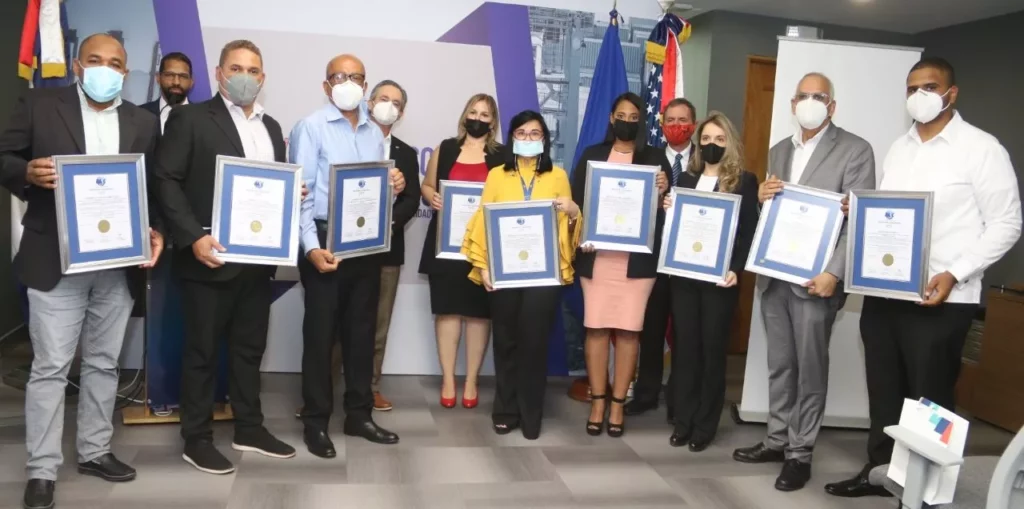 Las empresas certificadas fueron Davis & Geck Caribe Medtronic, Laboratorio Clínico De Moya, Seadom, Alimentos Líquidos Industriales, Caribetrans, Consorcio Cítricos Dominicano, Plastifar, Rizek Cacao, Agencias Navieras Rannik, E.T. Heinsen, Gerdau Metaldom, Marine Express Dominicana, Mediterranean Shipping Company Dominicana, Seguridad y Garantía, Servicios De Vigilancia Guarocuya, Speedster Global Logistics, Goya Santo Domingo, C-Logistics Solutions, Security Force, Yobel, Guardas Alertas Dominicanos y Frederic Schad.