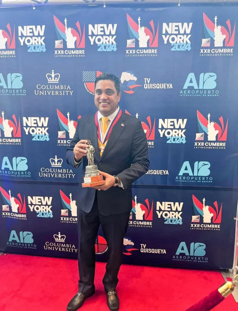 Nueva York.- El presidente de la Federación Dominicana de Municipios (Fedomu), Kelvin Cruz, fue reconocido en la XXII Cumbre Latinoamericana, realizada en la Universidad de Columbia, de esta ciudad de Estados Unidos.