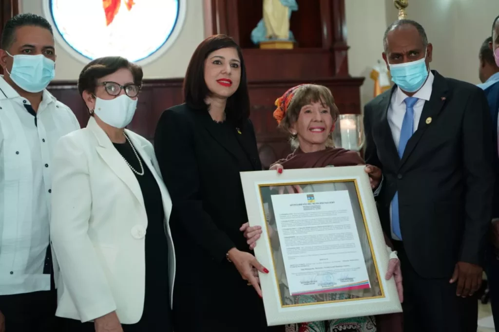 Salcedo.-Apropósitos de conmemorarse el 141 aniversario de la elevación a Puesto Cantoral del hoy municipio de Salcedo, el Ayuntamiento municipal, reconoció la trayectoria de la veterana periodista Magda Florencio, y la declaró como hija distinguida, por los grandes aportes a su comunidad y por poner en alto el nombre de Salcedo.