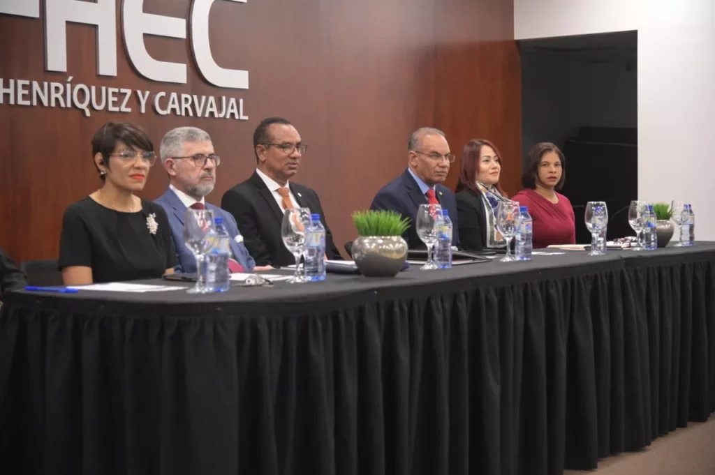 La mesa principal del acto la ocuparon, además, Nora Rubirosa, rectora de la Universidad Experimental Félix Adam; el magistrado Manuel Ramírez Suzaña, asesor de la UFHEC y la directora de la Escuela de Derecho de esa academia, Diomandy Castillo.