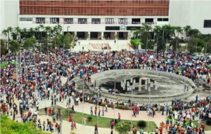 Miles de personas se movilizaron frente al congreso pidiendo la reelección del presidente Danilo Medina/afoto Jose de Leon