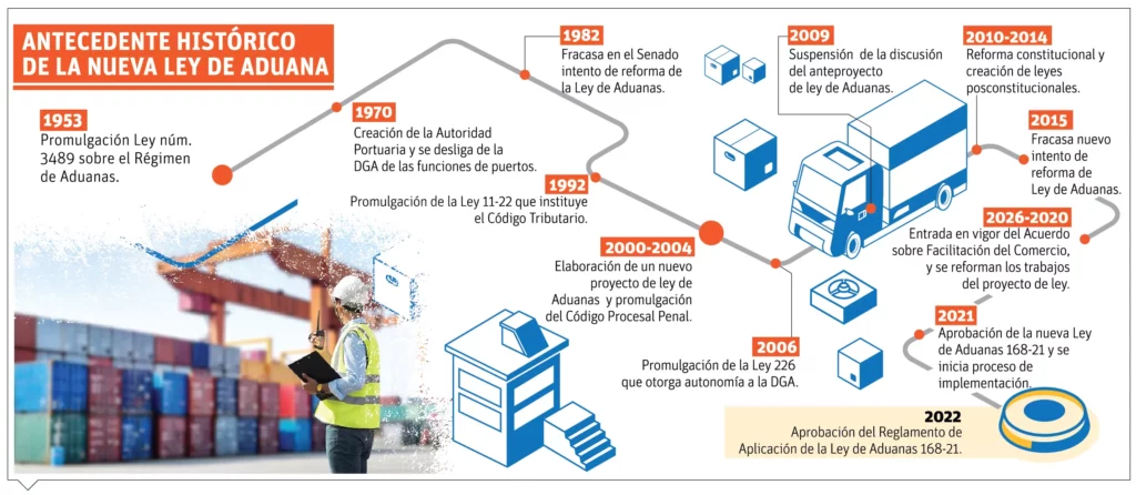 Así como a la luz de directrices de organismos internacionales en el ámbito aduanero y el comercio internacional, como la Organización Mundial de Aduanas (OMA), y la Organización Mundial del Comercio (OMC).VinculadaLa normativa fue promovida por la Dirección General de Aduanas (DGA) y agotó un proceso de consultas y consensos entre los legisladores, sectores Públicos y Privados.