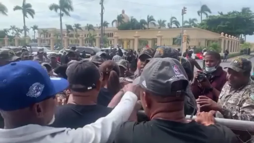 SANTO DOMINGO.- Policías pensionados realizaron este viernes una protestas en la que se escenificaron forcejeos con agentes uniformados que custodiaban los alrededores del Palacio Nacional.