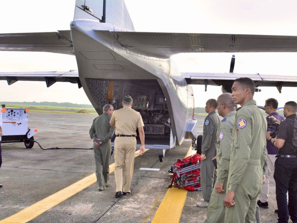 Un avión de transporte de la Fuerza Aérea de República Dominicana, encargado del envío inicial de alimentos y medicamentos esenciales.