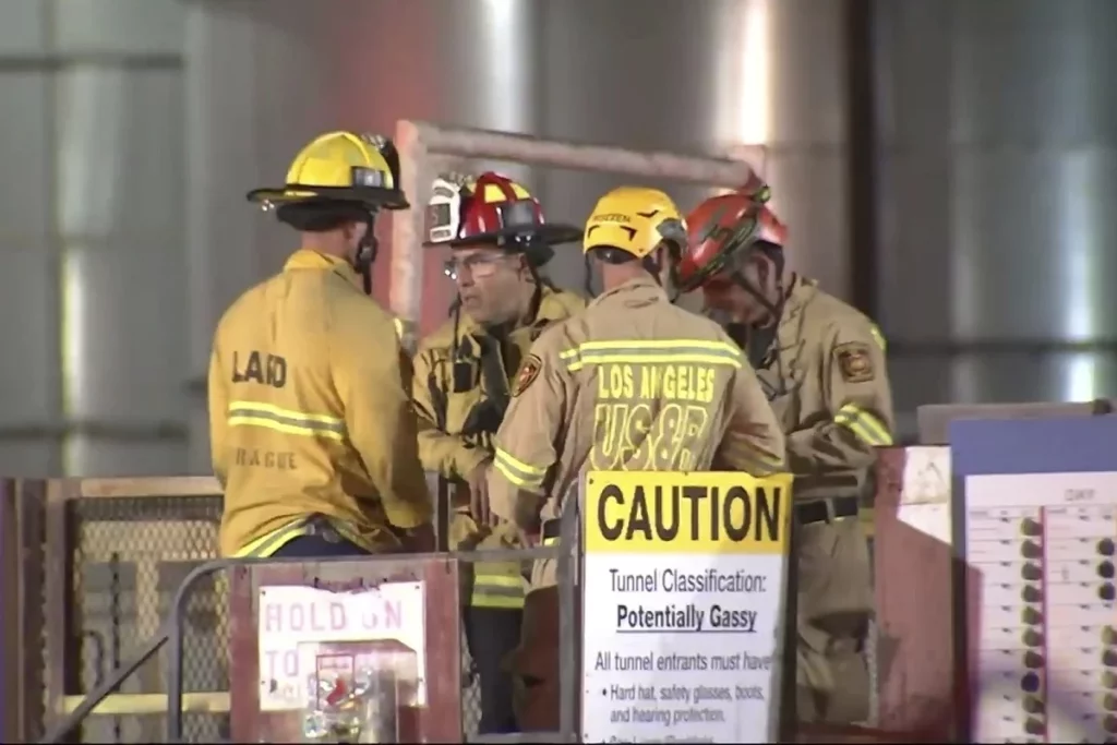 El derrumbe parecía haber ocurrido entre la máquina tuneladora, que estaba a 8 kilómetros (5 millas) de la única entrada, y los obreros que estaban trabajando a 9,6 kilómetros (6 millas) del acceso, dijo Michael Chee, portavoz de los Distritos de Saneamiento del condado de Los Ángeles, que está a cargo del proyecto de casi 700 millones de dólares. Los operarios estaban a unos 121 metros (400 pies) bajo tierra.