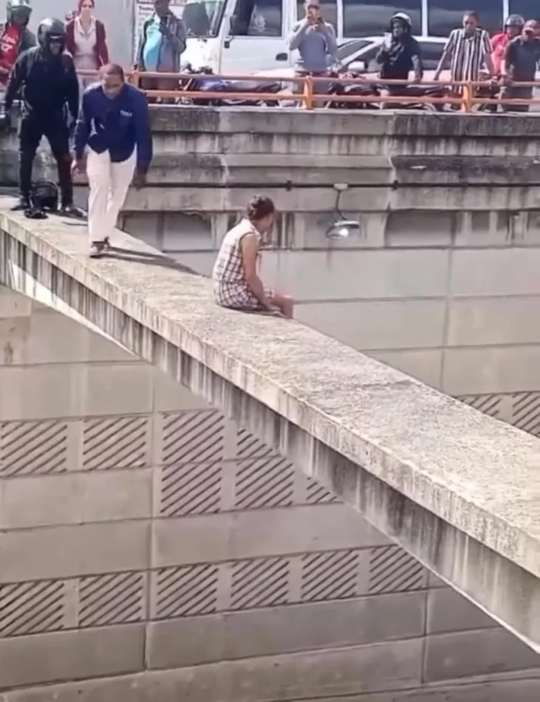 A través de un video que llegó a nuestra redacción, se puede apreciar el momento exacto en que cuatro ciudadanos (aparentemente motoristas) evitan que la mujer, cuya identidad se desconoce, se lance al vacío.