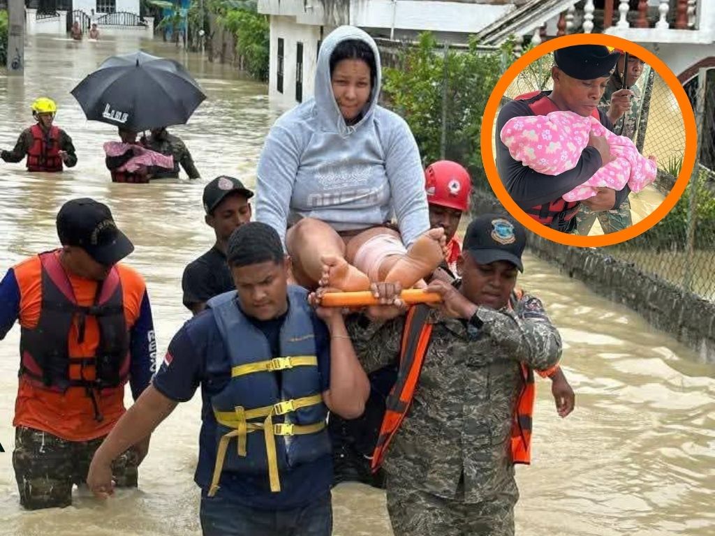 PUERTO PLATA.- Una acción que ha sido muy aplaudida fue el rescate de una mujer recién parida la cual quedó atrapada en su vivienda tras las inundaciones causadas por las lluvias en Sabaneta de Yásica.