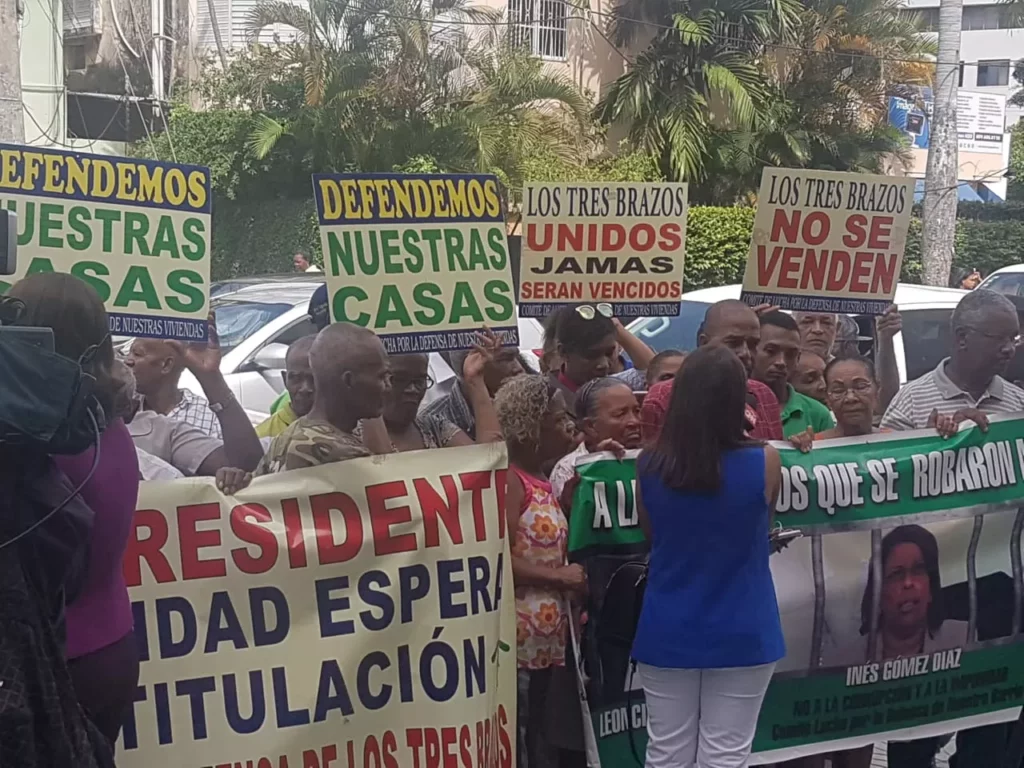 Santo Domingo.– Residentes de los Tres Brazos realizaron una manifestación frente al Palacio de Justicia de Ciudad Nueva en reclamo de que sean enviados a prisión los 11 imputados de la venta irregular de los terrenos de Los Tres Brazos.