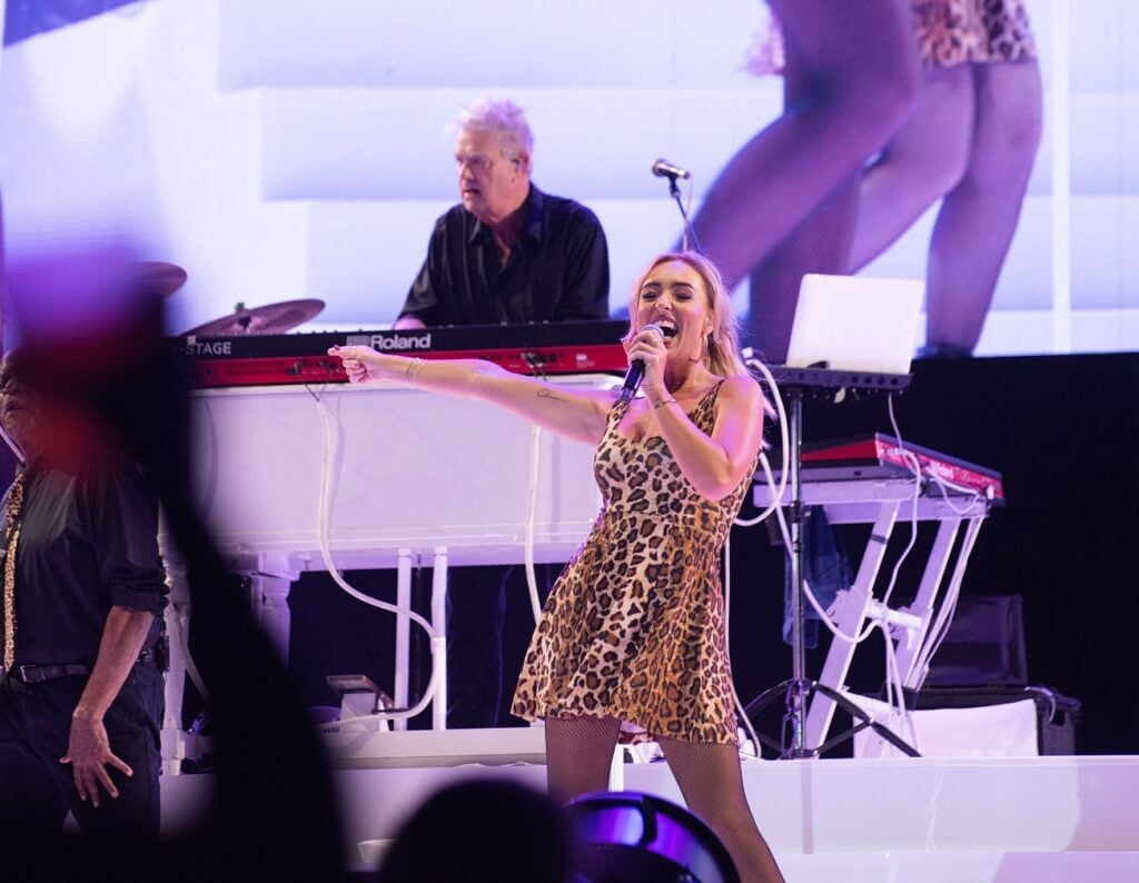 Además de su talento musical, Stewart cautivó con su estilo y presencia en escena, realizando cuatro cambios de vestuario que demostraron su elegancia y energía: inició con una camisa blanca al estilo de los 80 y pantalón marrón de animal print; más tarde apareció con pantalón negro y camisa marrón de leopardo, entre otros looks cuidadosamente seleccionados.