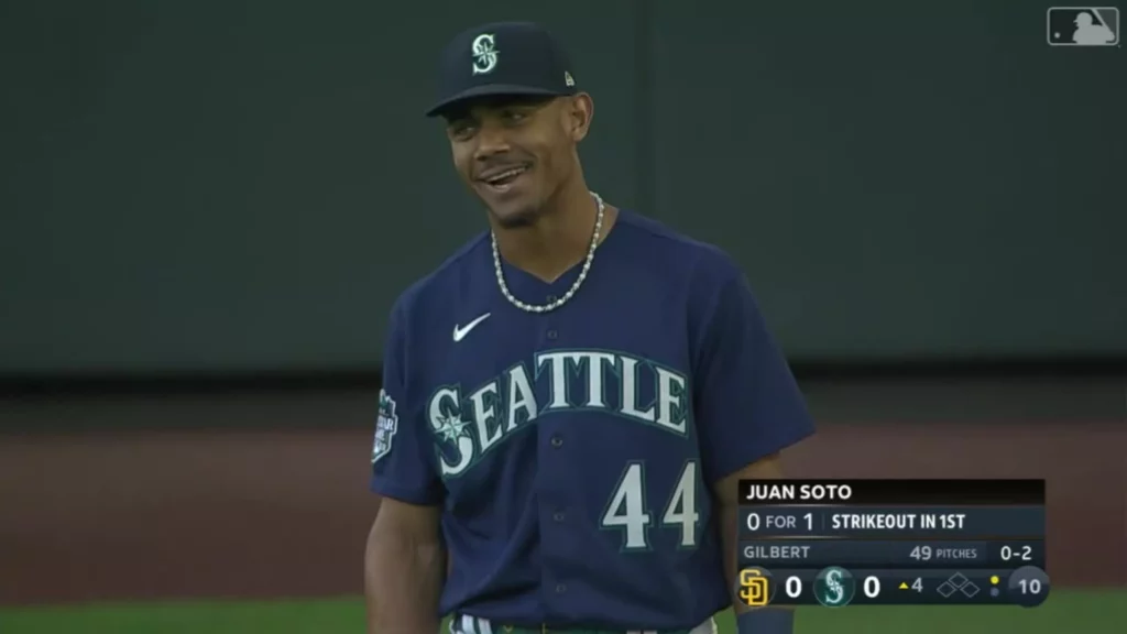 Gilbert retiró a 21 de sus 22 adversarios y sólo permitió un sencillo de Xaner Bogerts dentro del cuadro en la segunda entrada. El jardinero central dominicano Julio Rodríguez ayudó a Gilbert (10-5), al robarle a su compatriota Fernando Tatis Jr. un jonrón mediante una estupenda atrapada frente a la cerca.