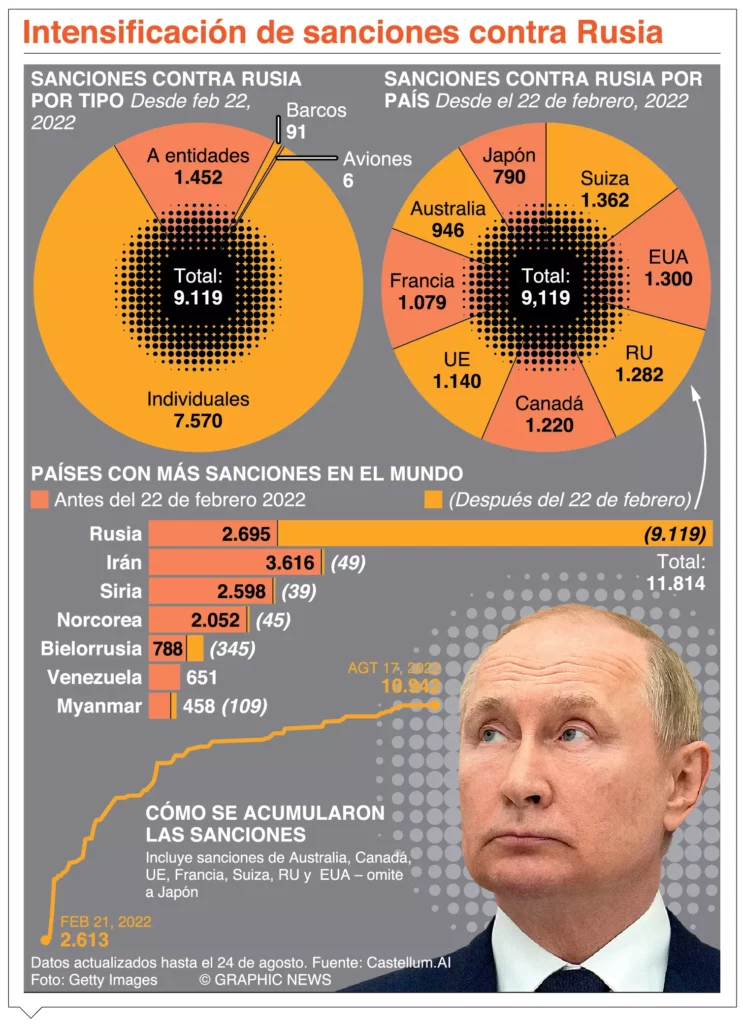 “Si nos doblan los brazos, si nos prohíben los pagos o si se renuncia al suministro de las turbinas reparadas o al lanzamiento del (gasoducto) Nord Stream 2, entonces esa clase de suministros no alcanzarán los volúmenes que esperan los países occidentales”, advirtió. Además, consideró “irreal” la posibilidad de que el gas licuado de Estados Unidos reemplace al gas natural ruso, ya que “el gas de tubería es mucho más barato y el licuado es tremendamente caro”.