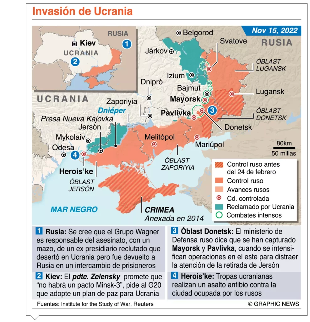 Kiev, Ucrania.-Rusia efectuó ayer el ataque aéreo más masivo contra la infraestructura energética de Ucrania desde el inicio de la guerra con el lanzamiento de más de 90 misiles, y lo hizo en plena cumbre del G20 en Bali y tras la humillante retirada de su Ejército del norte de la región de Jersón.