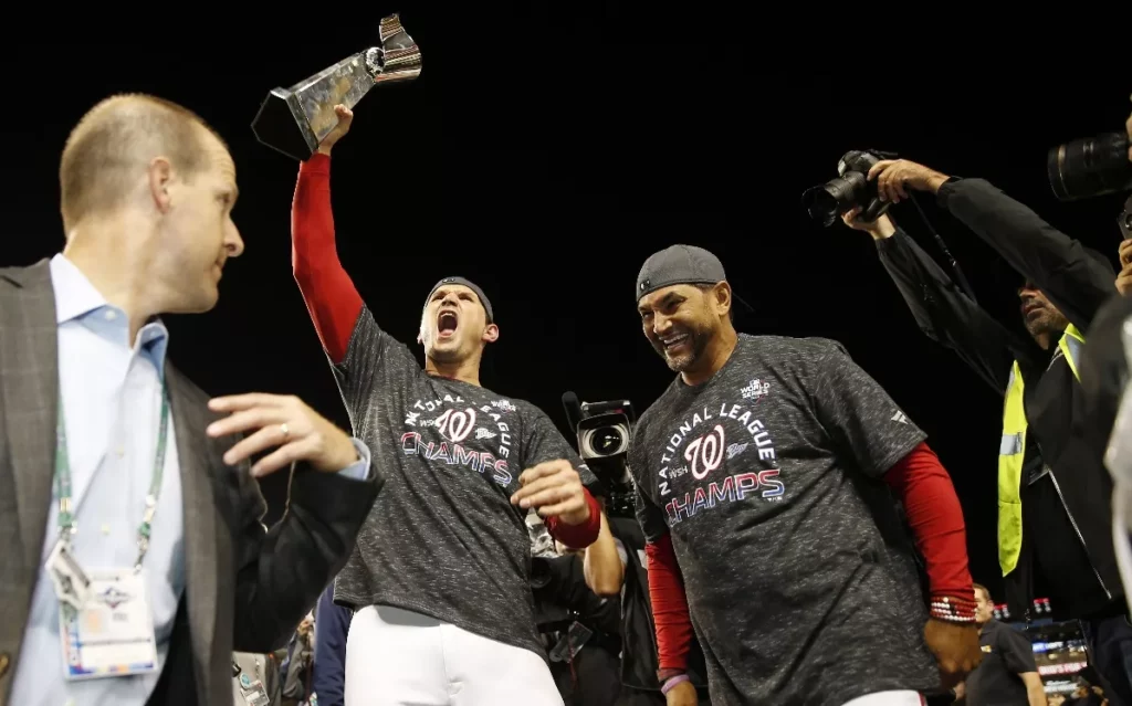 “Ya lo he visto llorar un par de veces. Apenas al pasar la primera ronda, y ahora que estamos en la Serie Mundial”, comentó el campocorto Trea Turner, en medio de la algarabía del martes, al hablar del primer jugador seleccionado en el ‘draft’ por los Nacionales en 2005 y el único que ha vestido su uniforme en todas y cada una de sus 15 temporadas (incluso una vez cuando la palabra sobre el pecho decía “Natinals” en lugar de “Nationals”). “Ha puesto su corazón y alma en esta organización”, agregó Turner. “Sacrificó mucho.