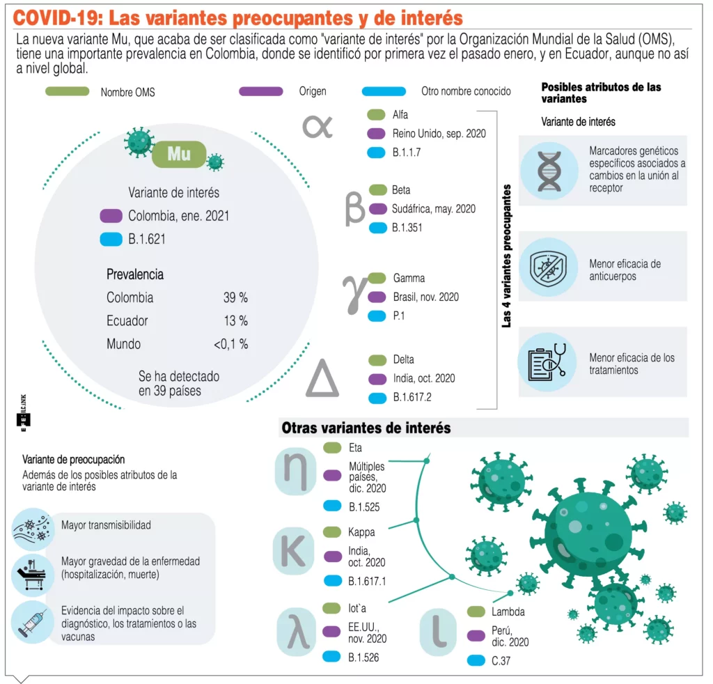 Skwees manifestó que “Mu” ha sido clasificada por la Organización Mundial de la Salud (OMS), como una variante de interés bajo vigilancia, al igual que la variante corona.
