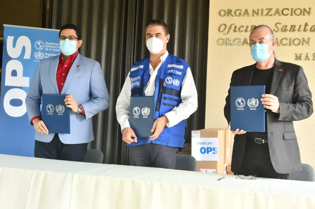 Las donaciones fueron recibidas por el viceministro de Salud Colectiva doctor Eladio Pérez, en representación del ministro de Salud, doctor Daniel Rivera quien agradeció el gesto al representante en el país de la OPS, doctor Olivier Ronveaux.