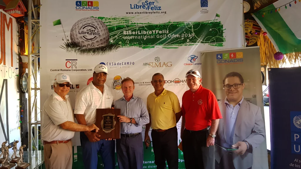 LA ROMANA.- Steve Sampson, con un total 30 puntos, obtuvo el mejor score bruto, para coronarse campeón del torneo “ElSerLibreYFeliz” International Golf Open 2018, evento celebrado exitosamente en el campo "The Links" del prestigioso complejo turístico Casa de Campo Resort & Villas en la ciudad de La Romana, dedicado a George Bell, prestigioso liga mayorista y Jugador Más Valioso (MVP).