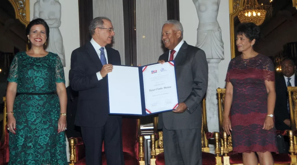 Santana, quien es director del matutino El Caribe, recibió el galardón de parte del presidente Danilo Medina y la vicepresidenta Margarita Cedeño, además del ministro de Educación, Andrés Navarro, y el presidente del CDP, Adriano de la Cruz, en una ceremonia celebrada ayer en el salón Las Cariátides del Palacio Nacional.